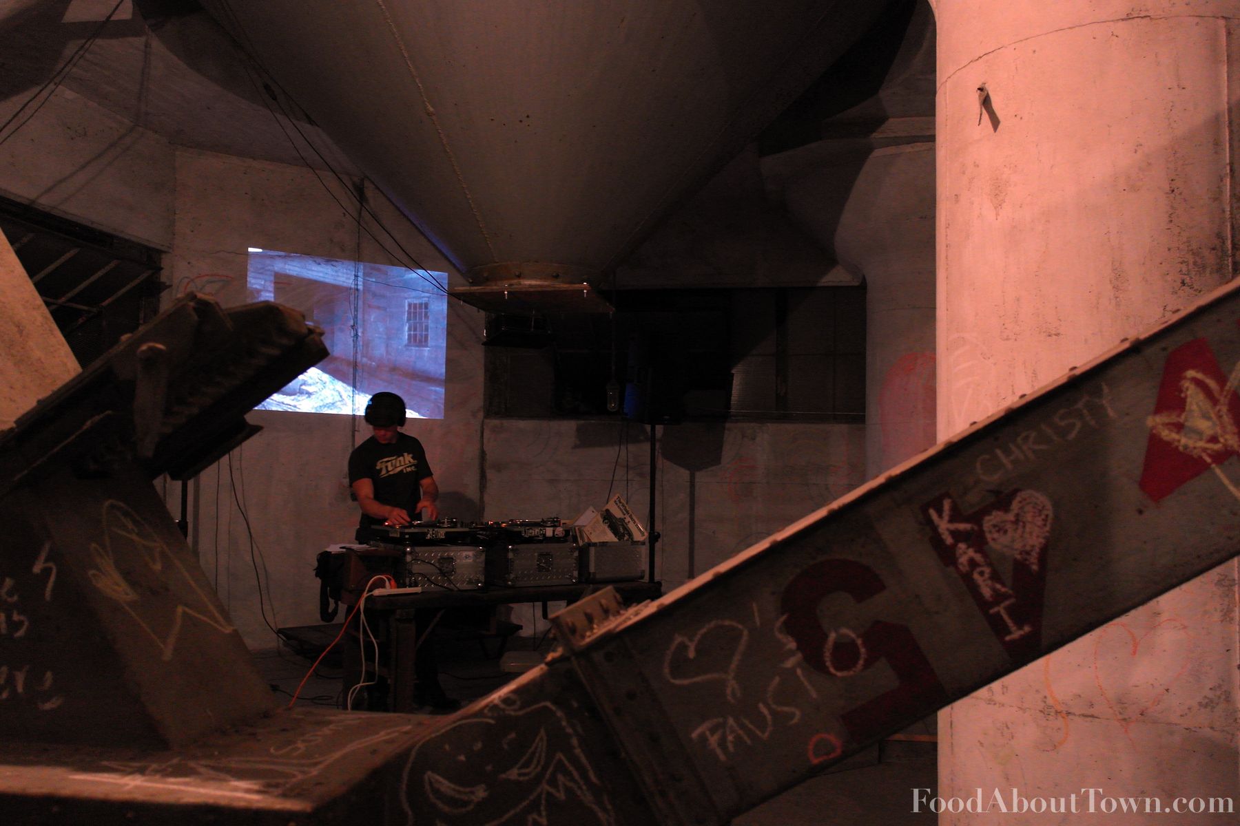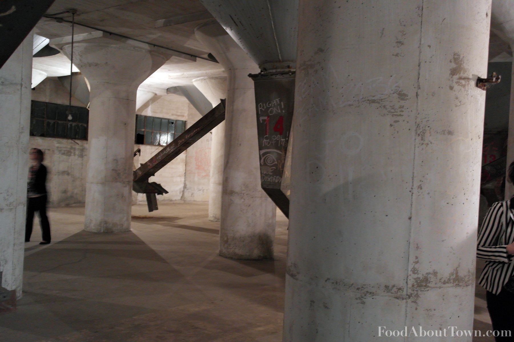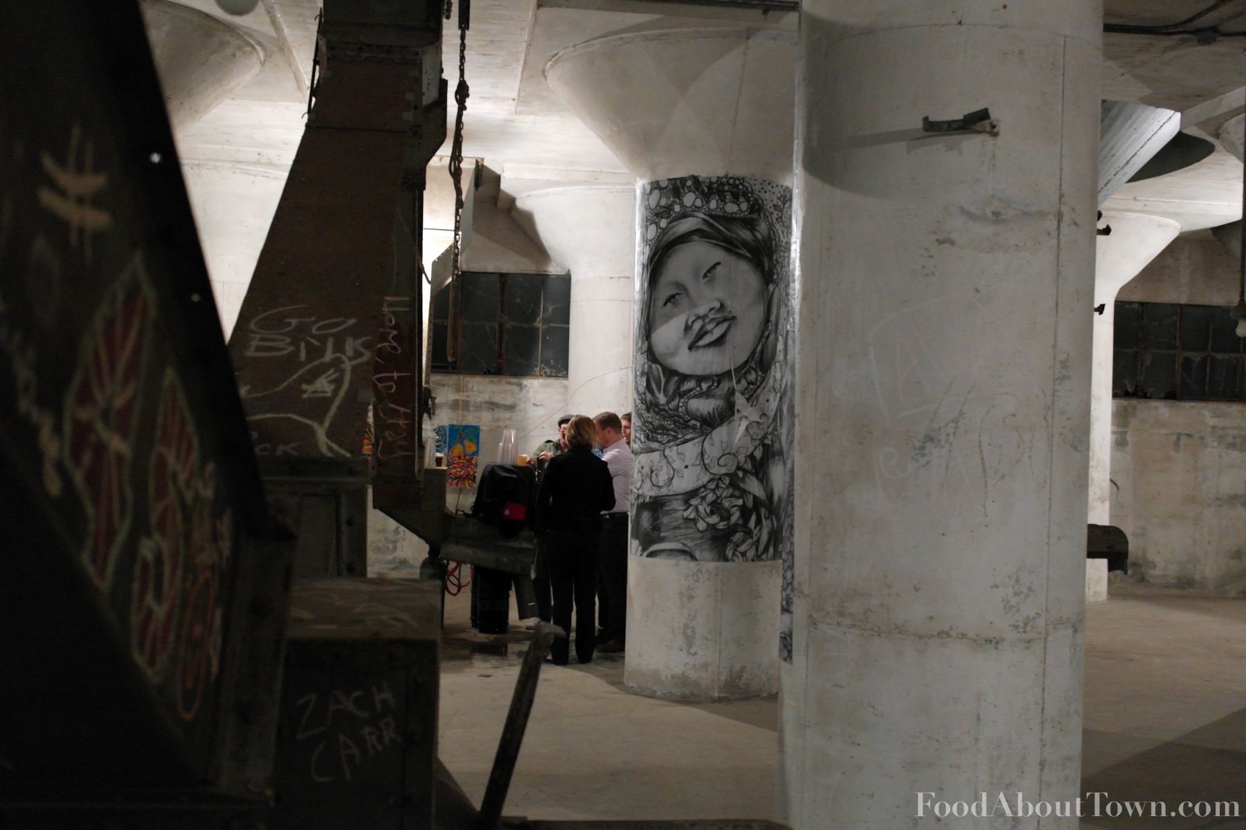 Following the impressive appetizer round, we moved inside the grain elevator to start the entrée round and as we walked in I was blown away by what they had in store for us. A loop of old black and white grain themed films were projected against one of the walls in the expansive former industrial interior, seemingly random art installations were painted on columns and people had written grain themed stuff in chalk on steel beams leaving me feeling like we were gathered to eat at an art installation. I think it left me in a perfect mood for the experimental meal we had ahead of ourselves. We started it off with some corn tostadas topped with roasted Oles Farm chicken, a seasoned avocado puree, charred corn, chicory lettuce and some mint that hit salty, sweet and savory notes and the chicken held up well against the other ingredients.
