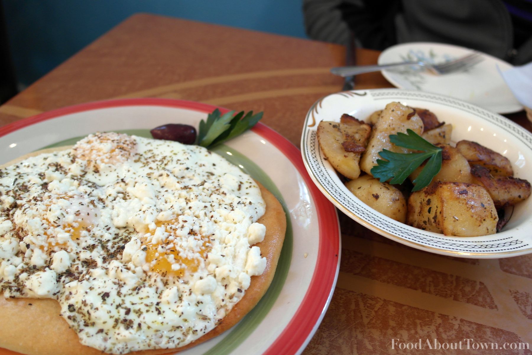 We went for one of our favorites for the main course of brunch; the tria nissia and a generous side of lemon potatoes. The tria nissia is an upgraded version of the typical sunny side up plate where the exposed golden yolks are covered with a healthy amount of oregano and feta that provides enough salt and sharpness to balance out the richness of the eggs. The lemon potatoes bring a crunch and citrus element to the table and I consider them to be one of the finest hash brown style potatoes I’ve had in Rochester. Tons of lemon, well salted, crispy edges and the interiors are tender. Everything I want in breakfast potatoes!