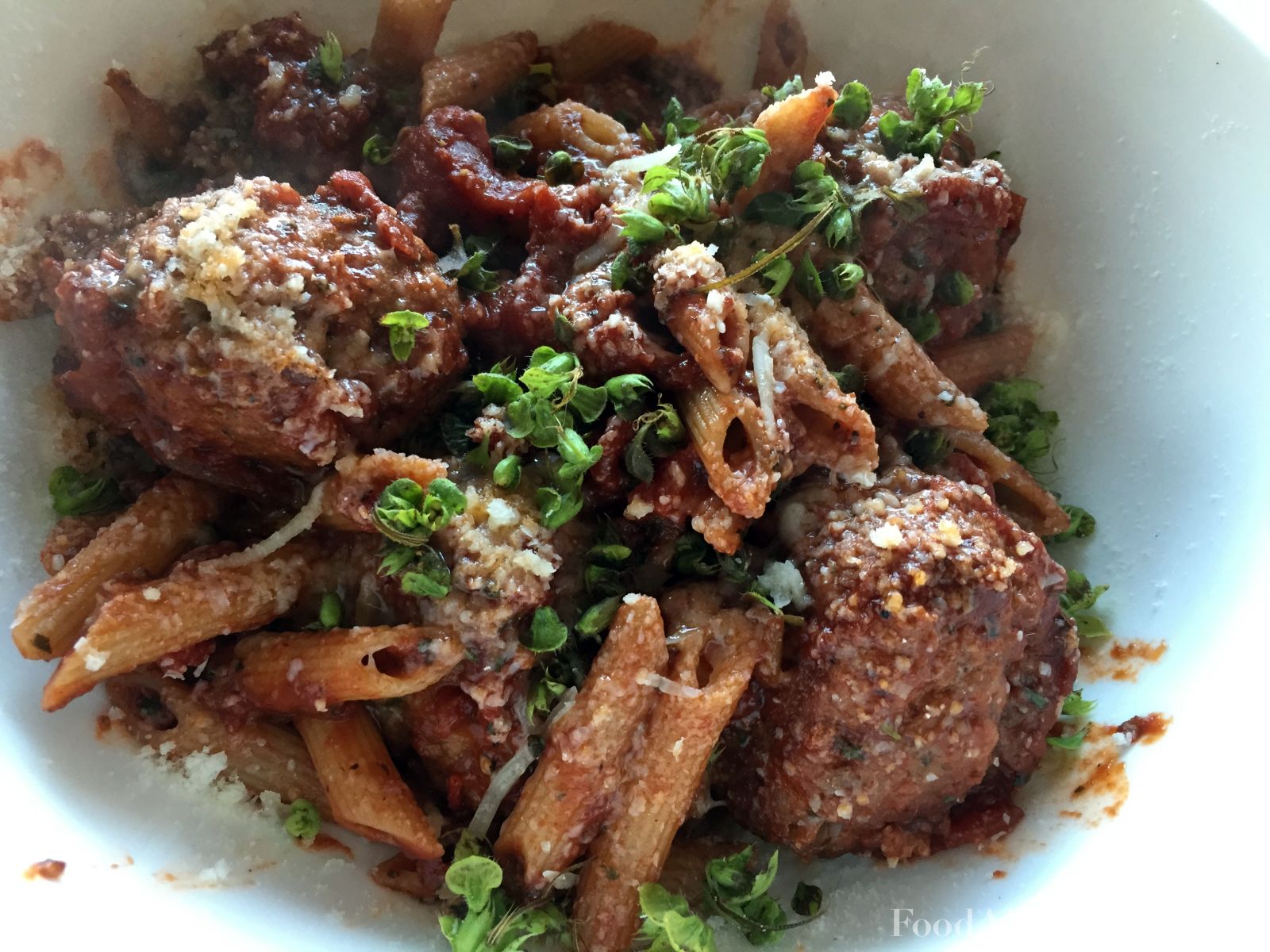 Thin slices of cured guanciale are the focus of the bucatini/spaghetti pasta dish. This is some serious crunchy cured pork that is powerfully salty and meaty in the best possible way. A generous portion comes out as a topping on the al dente pasta with a white wine, basil butter, chile, and garlic sauce that re-emphasizes the saltiness and brings some tang to the table. For someone that loves salt like I do, this is a dream come true. On the current menu the richness is amplified with a soft egg and an accent of Parmesan.
