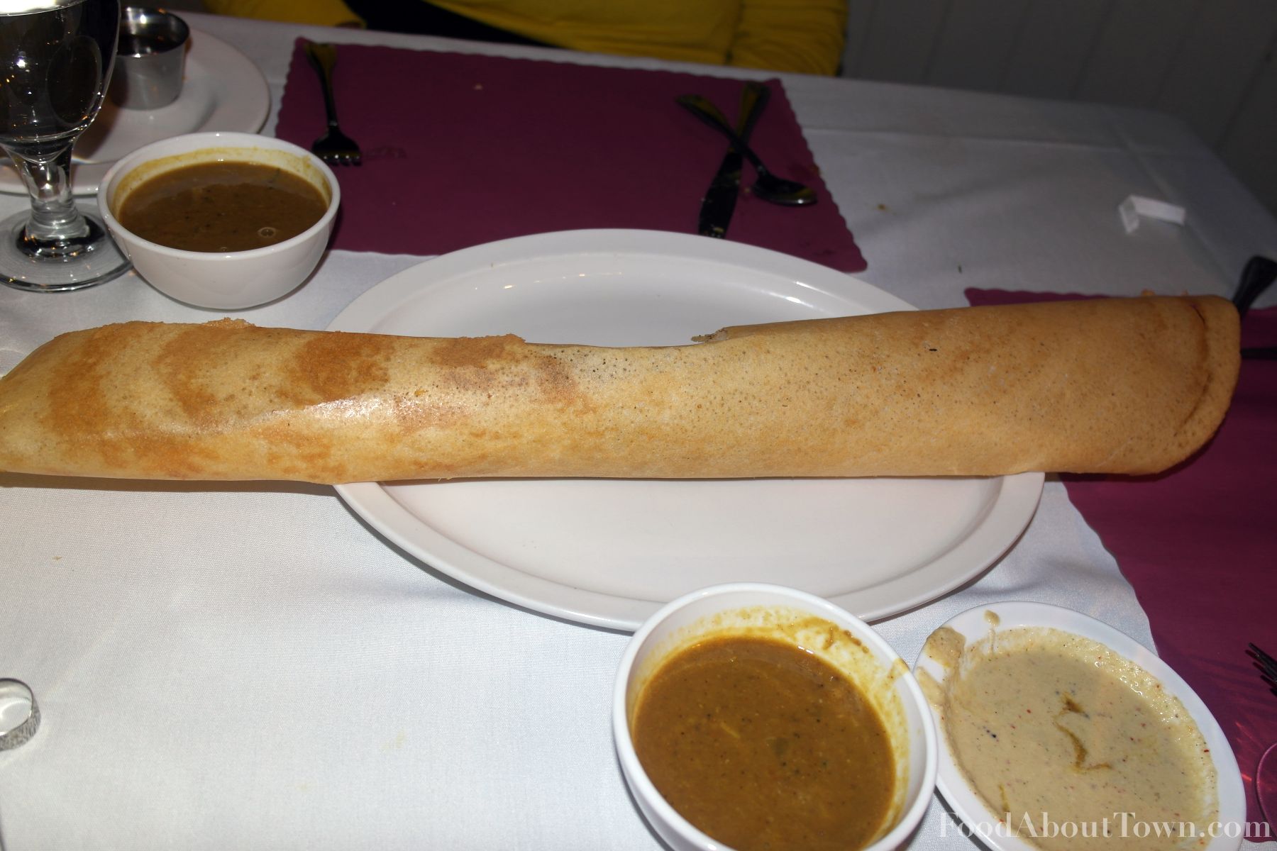We made two ventures into the southern portion of menu with the Medu Vada ($4.95) as an appetizer and the Paper Masala Dosa ($9.95) as part of our medley of entrees. The Dosa dramatically came out twice as long as the platter it was served on and consisted of a thin, crispy, and lightly-chewy lentil and rice crepe wrapped around mildly seasoned potato and onion filling. I preferred it to the bland and spongy doughnut shaped Medu Vada lentil dumplings. I’ve learned that those previously mentioned warm spices, along with coconuts, are major crops in southern India and those flavors were evident in the complex sambhar and coconut chutneys that accompanied the two southern dishes.