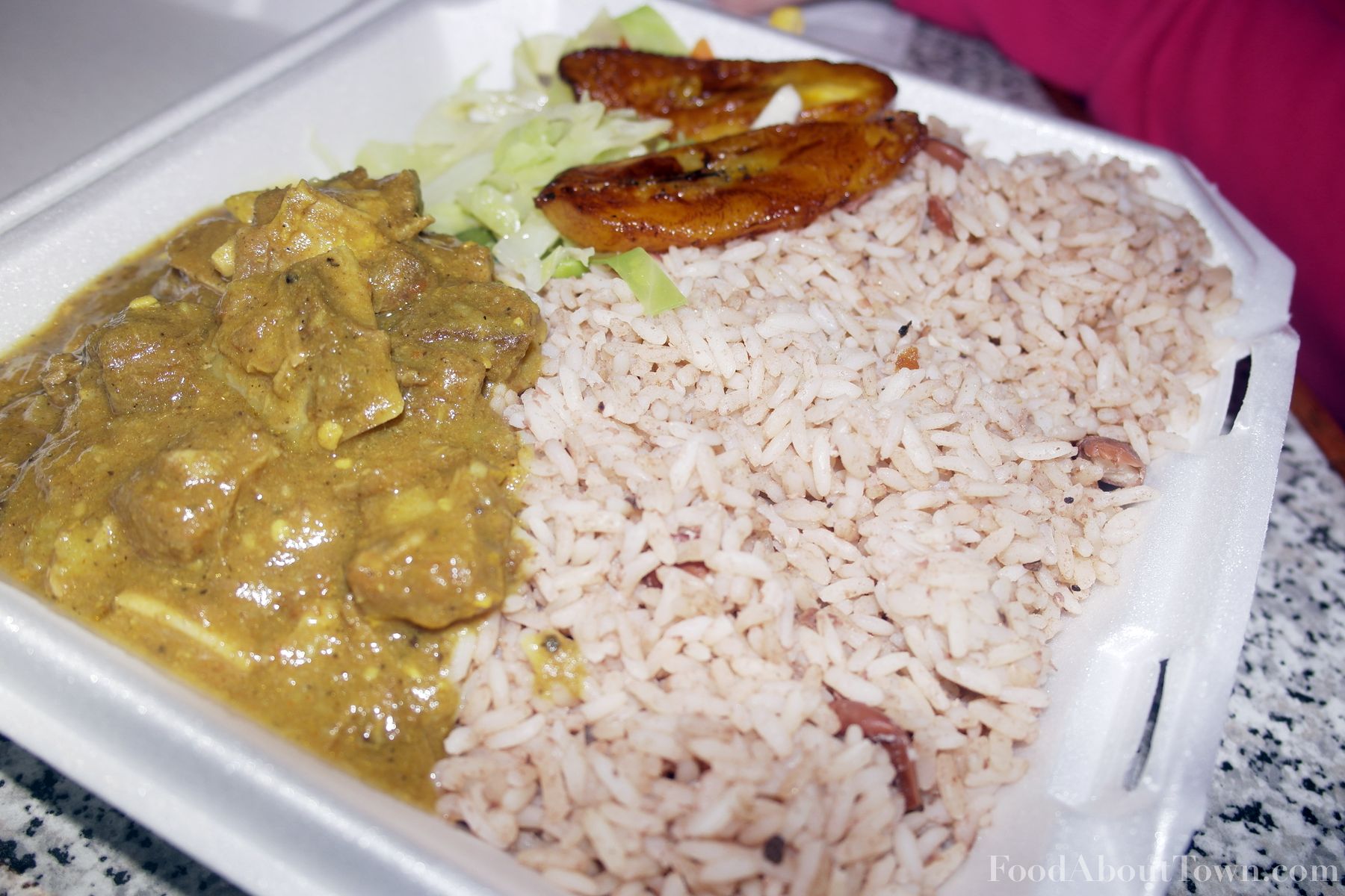 Since we neglected to mention we were eating in, we got our curry goat in a large to go container along with a hefty serving of rice and peas, some of the same cabbage and a few plantains. Curry goat is typically cooked using chopped goat meat with lots of small bones to be eaten around and this was no exception. We both enjoyed the tenderness of the meat and the base curry flavor, but I would have liked to have gotten a heat kick like I did from the jerk chicken. On the other hand, my dining partner appreciated the lack of heat so I’ll chalk that up to personal taste instead of something worth complaining about. Rice and peas were basic and a good vessel to grab onto the sauce but not something I would want to eat on it’s own.