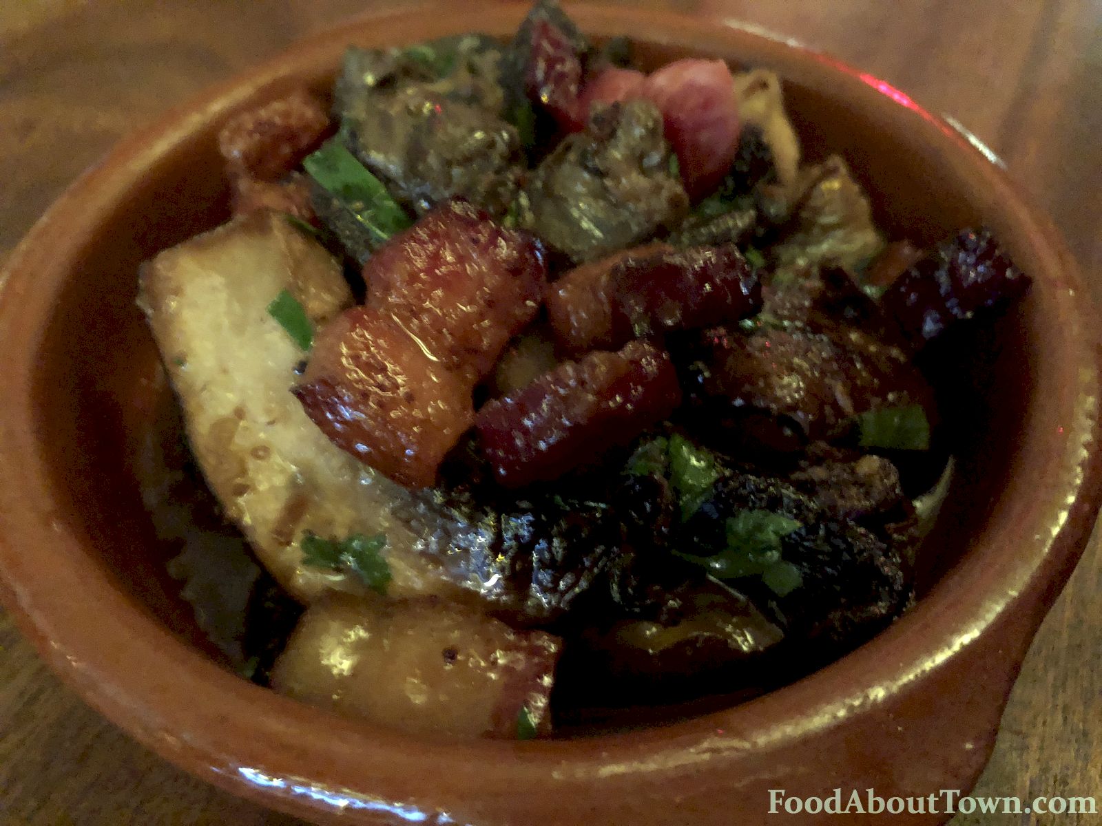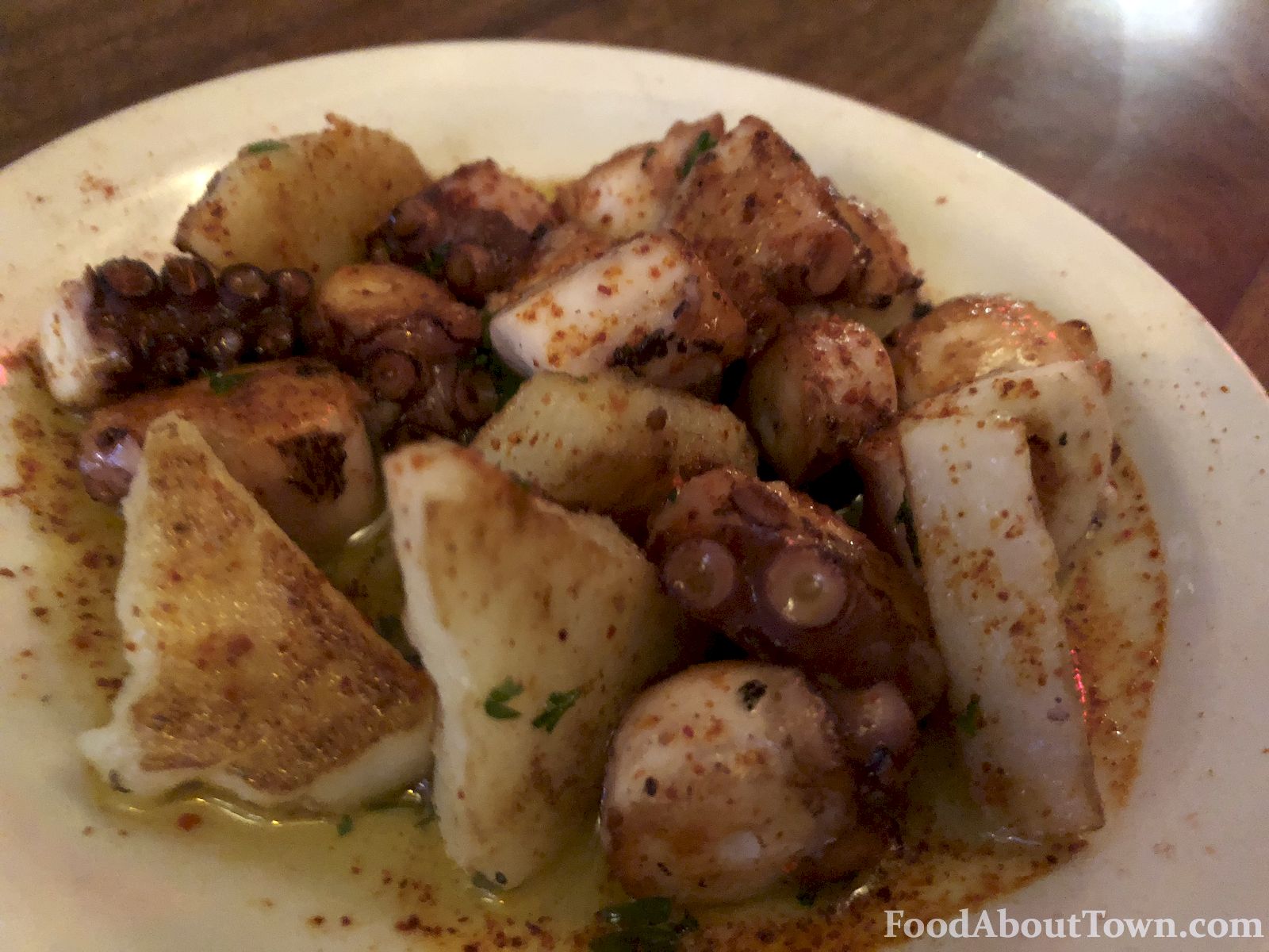 Bar Raval – Spanish pinxtos bar, grilled octopus/potatoes/paprika/olive oil, snails/mushrooms/bacon/butter, tomato bread, sherry