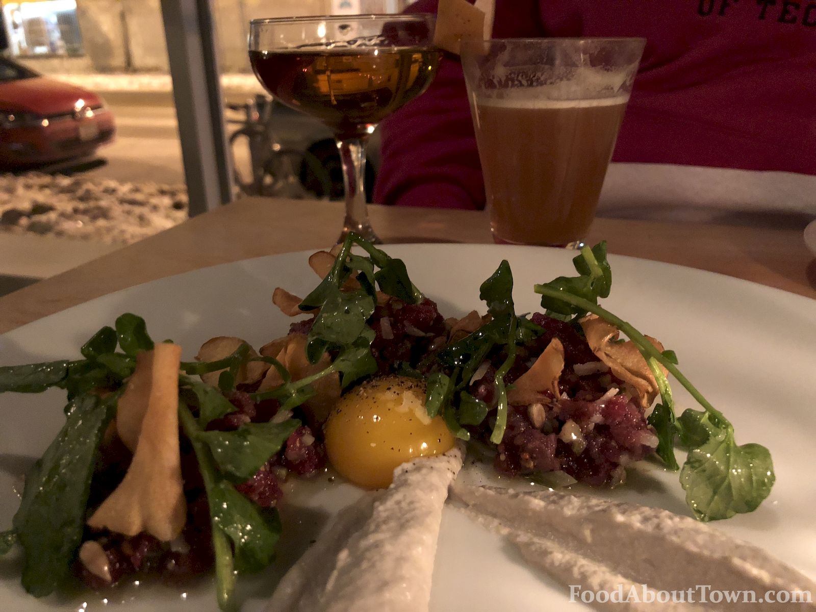 The Black Hoof – Jen Agg cocktail and neighborhood restaurant, horse tartare was perfectly balanced and textured, comfortable