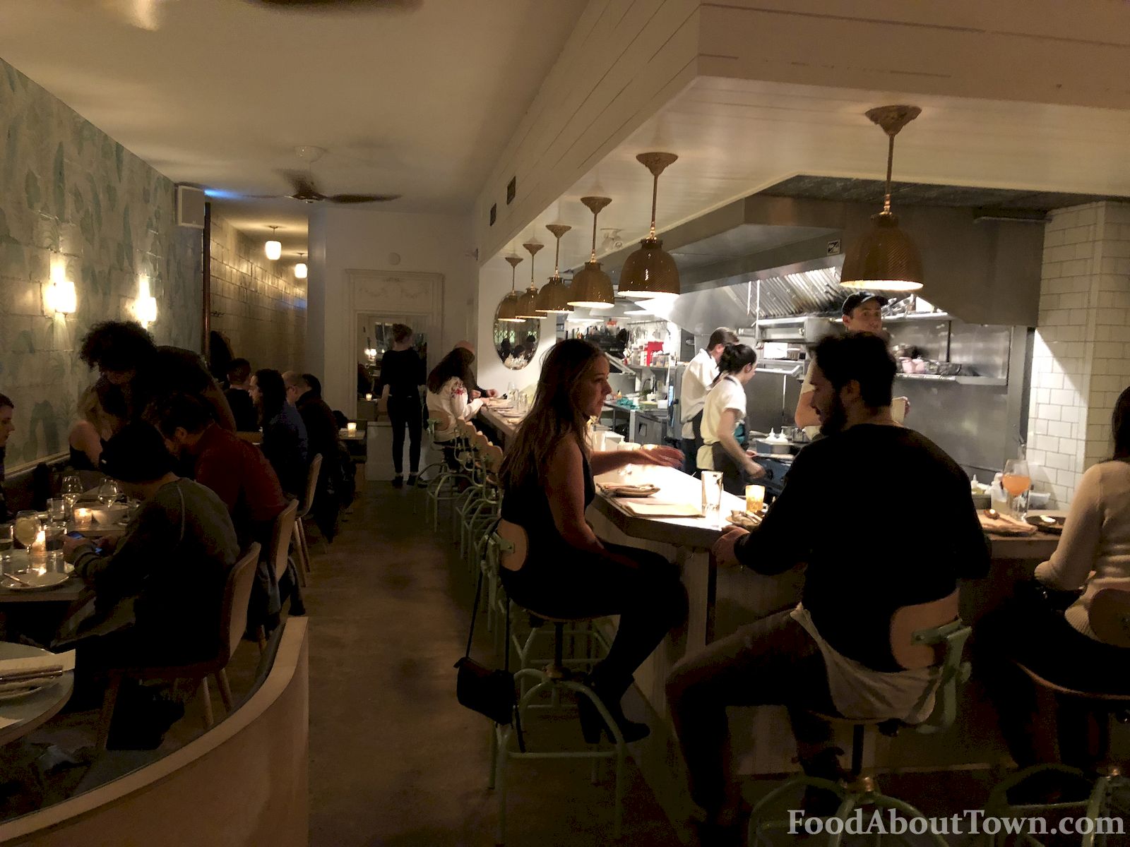 Grey Gardens – Jen Agg owned restaurant, Spanish orange wine, German riesling, smoked fish dip/chips, seabass crudo/turnip puree/ crispy leeks/dill, great enviornment