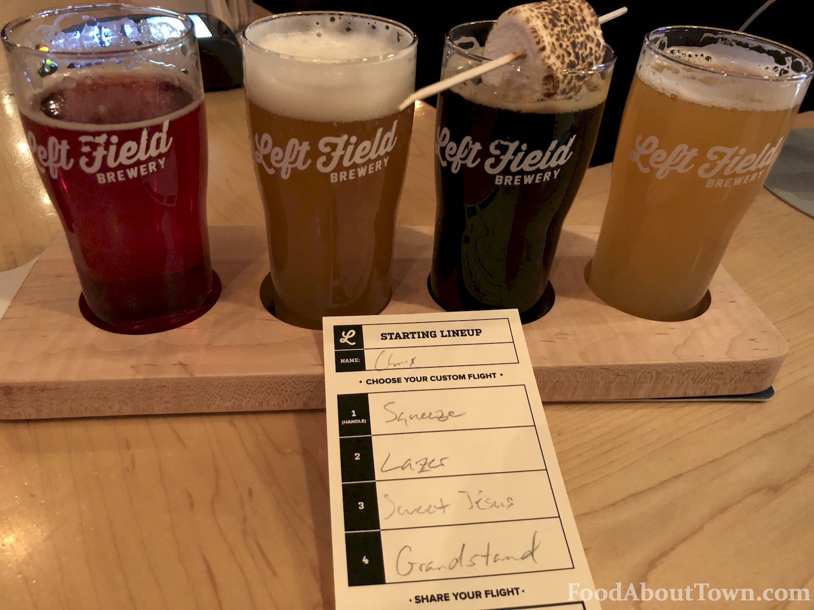 Left Field Brewery – grabbed a flight (hibiscus and raspberry gose, Sweet Jesus mocha and marshmallow stout and a general good variety) and some cans and bottles to bring back, great local beer spot