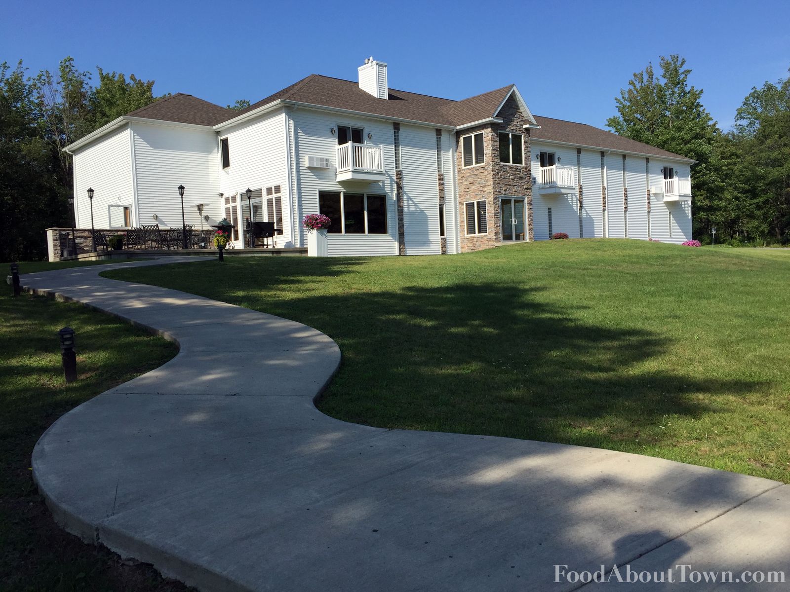 Despite being only a short drive from Rochester, it felt more like a country oasis after having not been outside the city fora while. Located in Darien Center, we took the non-highway routes out there which was a great excuse to get more immersed in the more country like atmosphere on the way. Pulling off of the main road through the extended forest driveway, we emerged to a beautiful view of the Lodge and the pond out front. We were greeted by the owners, Chef Dave and Caroyln Hamer, who are veterans of the lodge game and that experience really came through with the entire presentation.