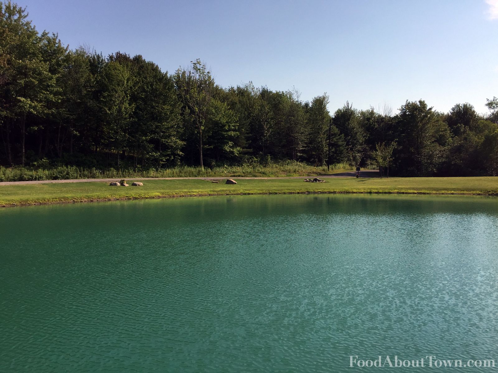The room we stayed in at the River Spring Lodge was welcoming including an updated design with a huge, comfortable bed and a bathroom that was completely on point. This is the kind of bathroom that people talk about on HGTV with a combination of contemporary and rustic elements, heated floors and an open shower. We set ourselves up in the room and then went to sit outside by the pond until dinner started.