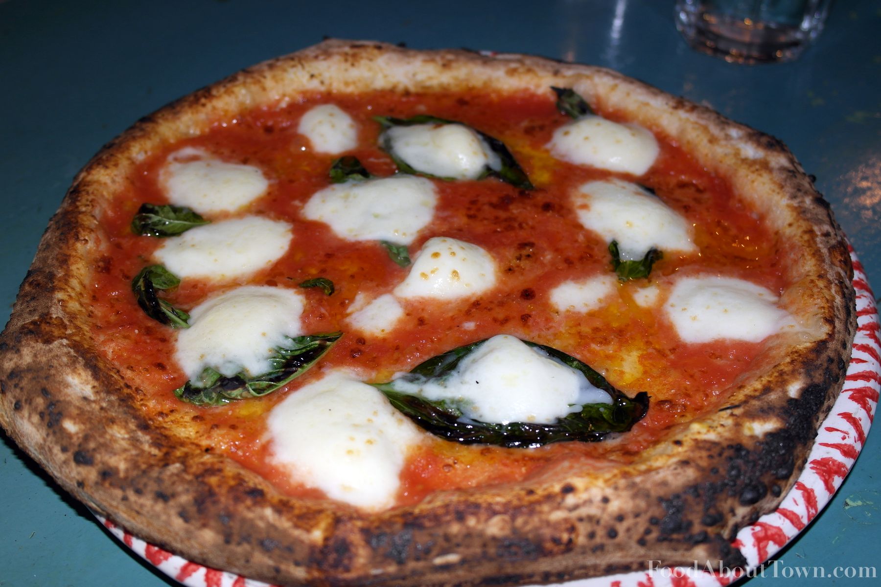Before I dive into the specifics about Fiamma, I’d like to give a quick primer on Neopolitan style pizza for those that aren’t familiar. I’m not an expert, but have become familiar with the style after sampling it in a number of different locations and also spending time making and baking the dough at home. Typically the crust is thin and cooked very quickly (under 90 seconds is preferred) in a 900°F+ wood fired oven and served somewhere in the 10-12” diameter range. The resulting pizza is not as crispy as a NY style pie and usually topped in a minimalist fashion with the most traditional being only crushed tomatoes, fresh mozzarella cheese and basil. That was just short description, so if you’d like to read more on the topic please check out Adam Kuban’s article on Serious Eats – Slice where he breaks down the style in more detail. Adam doesn’t work there anymore, but he is an engaging writer and still one of the biggest boosters of pizza in the food world. It is well worth reading that article and his other work if you get a chance.