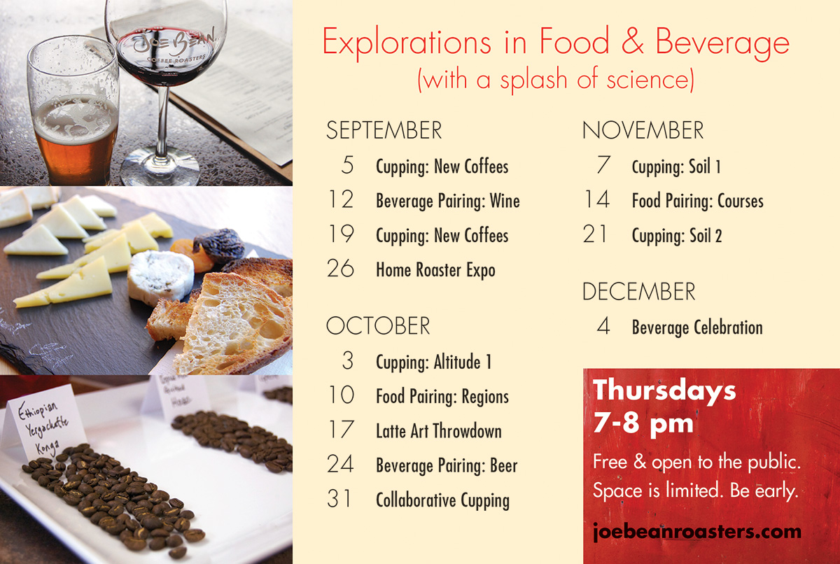 The Nexus Nights are a great service to the food and coffee community and I would recommend that anyone who is interested in taking their coffee (and other foods/drinks) more seriously give these free classes a try. The schedule is below: