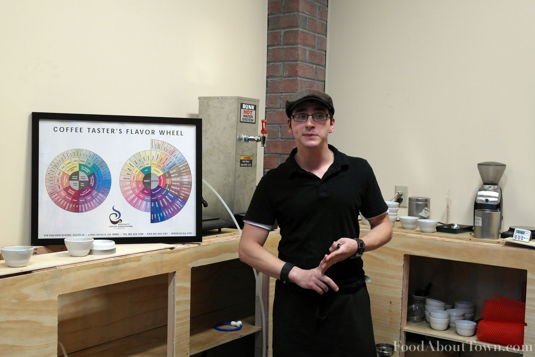 This first event was a cupping and involved the Ethiopian Sidama and the still in profiling Don Francisco Nicaraguan coffees and learning how to go through the cupping process. Wade Reed, one of Joe Bean’s veteran baristas, was our host for the evening in the Coffee Lab in the back corner of the shop and he started off with an explanation of how the evening would go. For each of the steps, there was a specific technique to maximize the compounds that get in the olfactory department and it was obvious that this is something that takes time to get good at. As a side note, I have never considered myself particularly good at picking out the flavors mentioned in the profiling of the coffees without prompting. That was one of the main reasons I wanted to go through the process and see if I could start to hone that ability.
