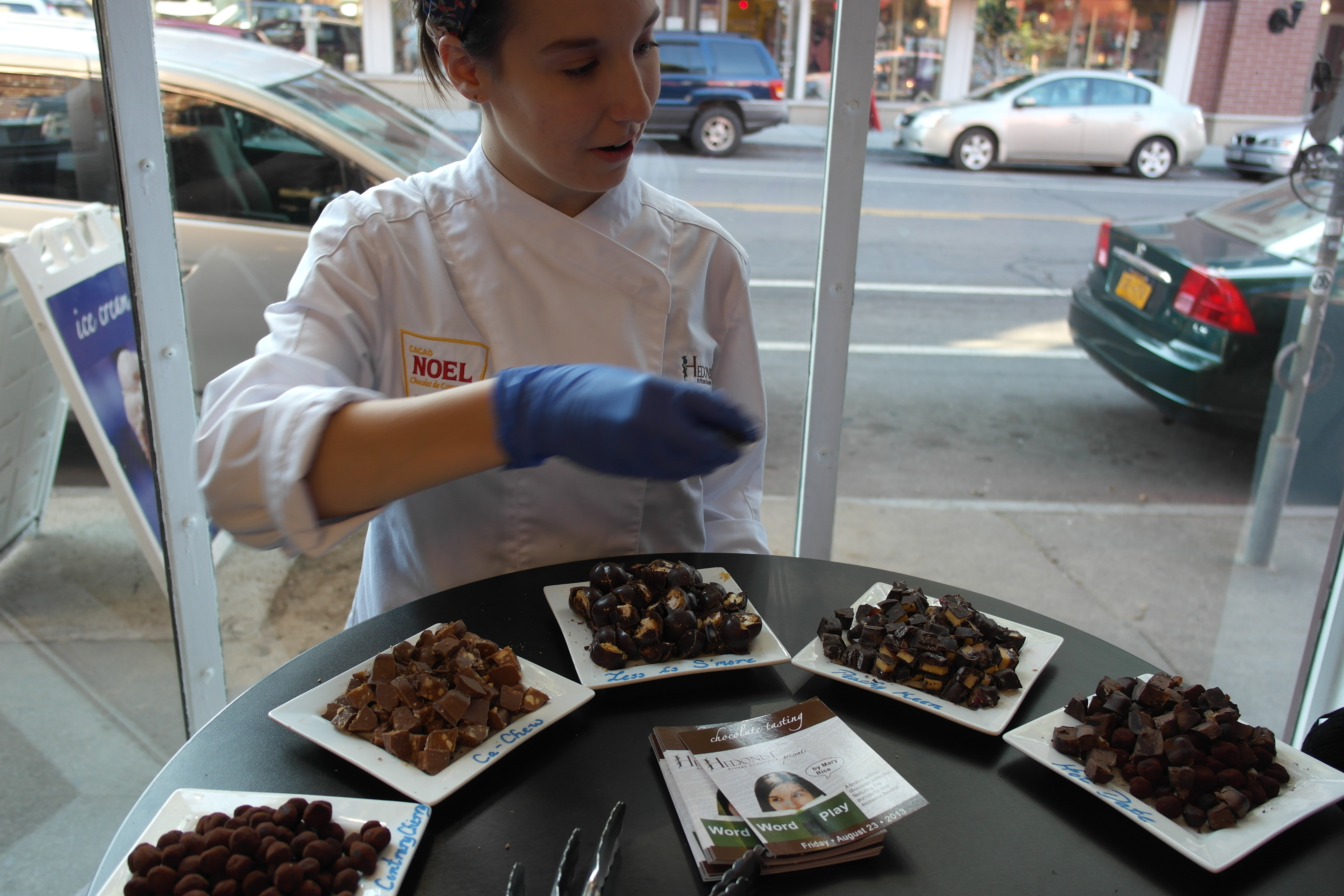 On my drive home from work Friday, I stopped by Hedonist Artisan Chocolates in the Southwedge for a Word Play themed truffle tasting from their college intern Mary Rice. It was a 5 piece collection with concoctions that stayed mostly in the comfortable range with some clever combinations and occasional forays into a bit more exciting territory. On the most basic side, Mary’s Quite Contrary Cherry came across as a straightforward cocoa rolled truffle with a pleasant cherry finish and the Ca-Chew was a nice twist on the traditional milk chocolate salted caramel with the addition of crunchy cashew butter bringing some nuttiness to the party. Plenty of salt for a salt fiend like me!