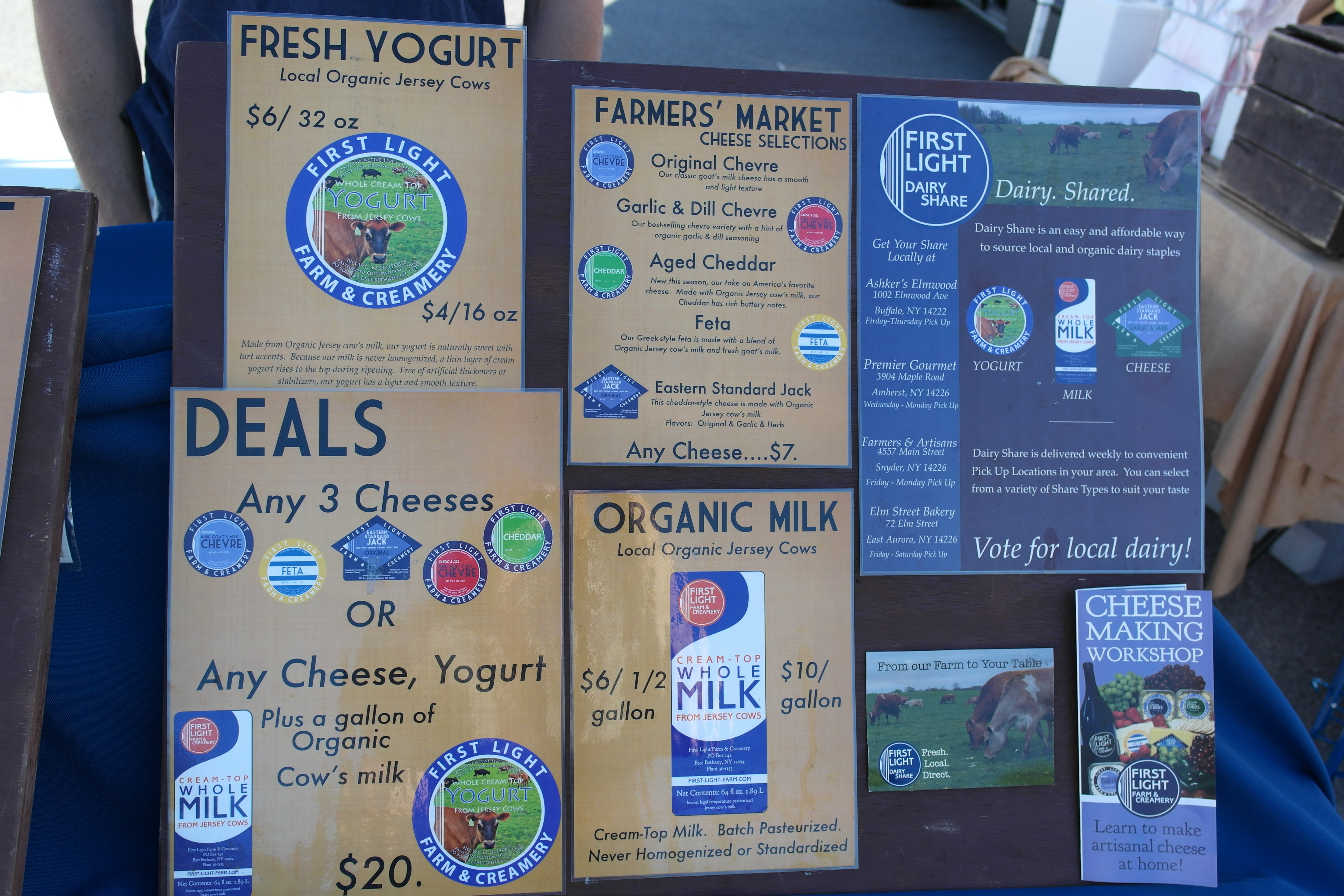 First Light is at the Brighton Farmer’s Market on Sunday mornings (not sure about other markets they may attend around Rochester) and you can check out their products at a number of different restaurants and stores around town.