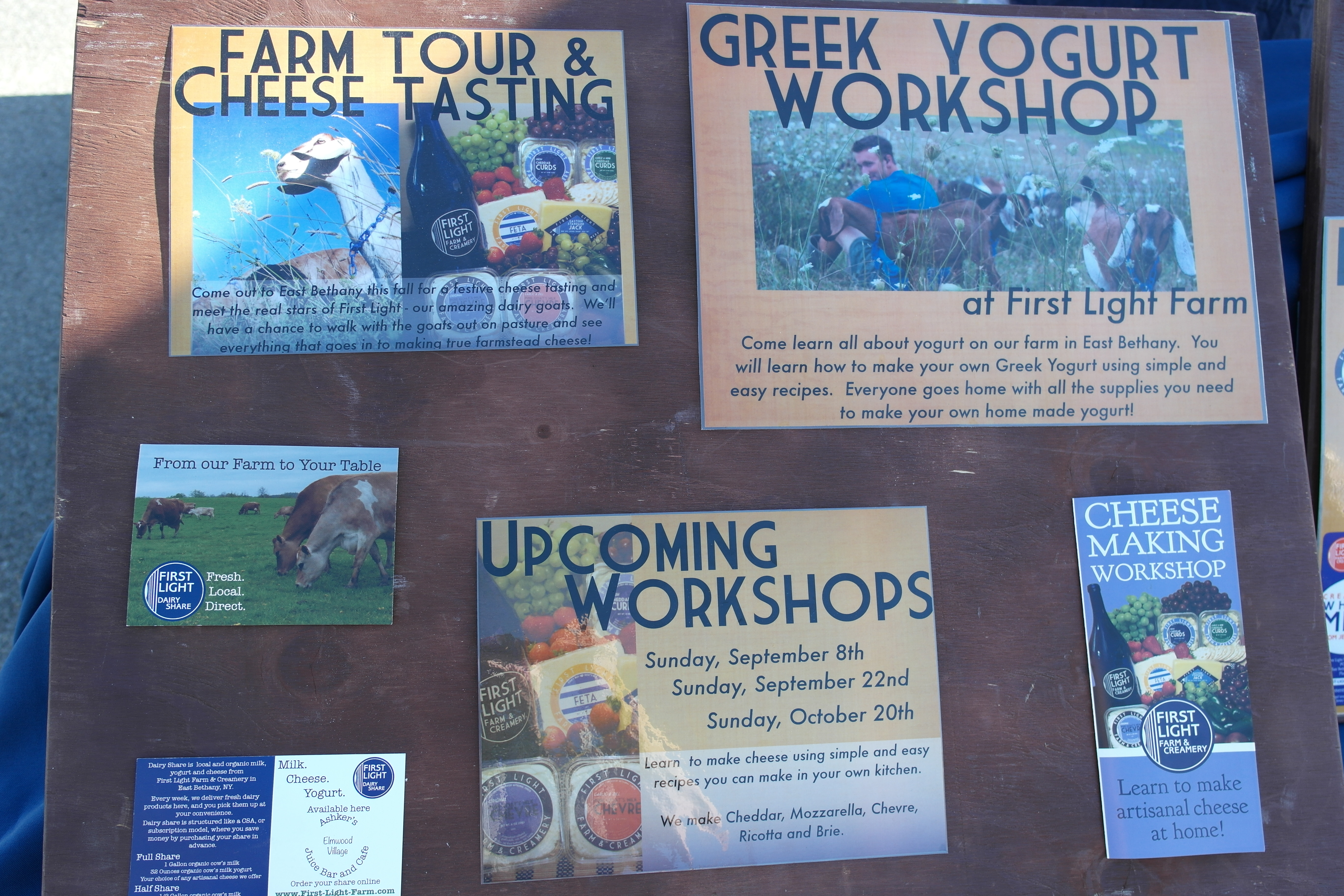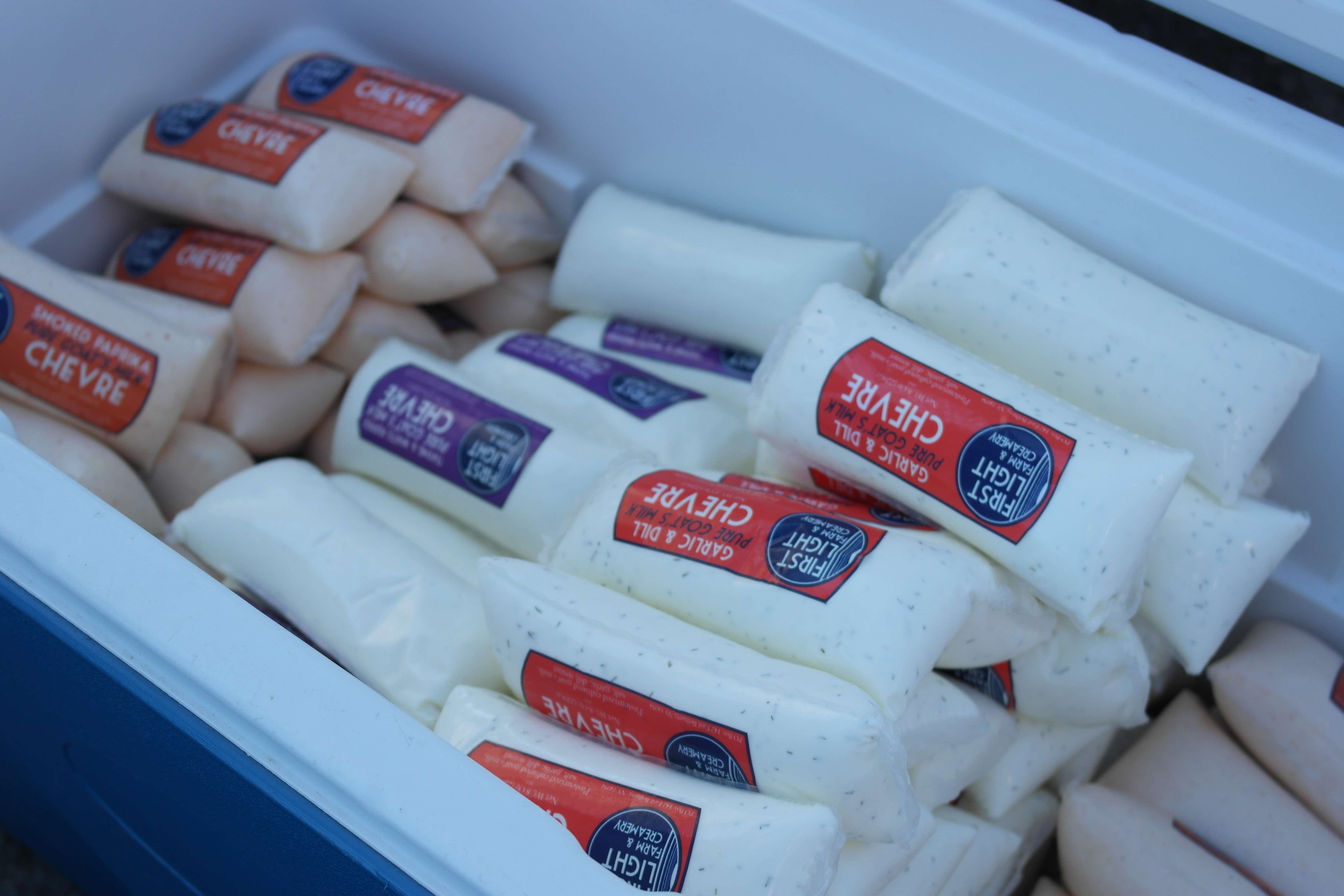 The focus this week on the Food About Town Market Spotlight is on First Light Farm and Creamery out of East Bethany, NY in Genesee County. First Light is a goat dairy farm that works with both goat and cow milks and produces a wide range of products including their signature chevre made from goat milk. This creamy, easily spreadable cheese comes in traditional plain and also in a flavors including garlic/dill and paprika both of which I have enjoyed greatly spread on some Flour City Bread. If you haven’t tried chevre before, it makes for a more interesting substitute for cream cheese and an opportunity to get some more goat milk in your diet.