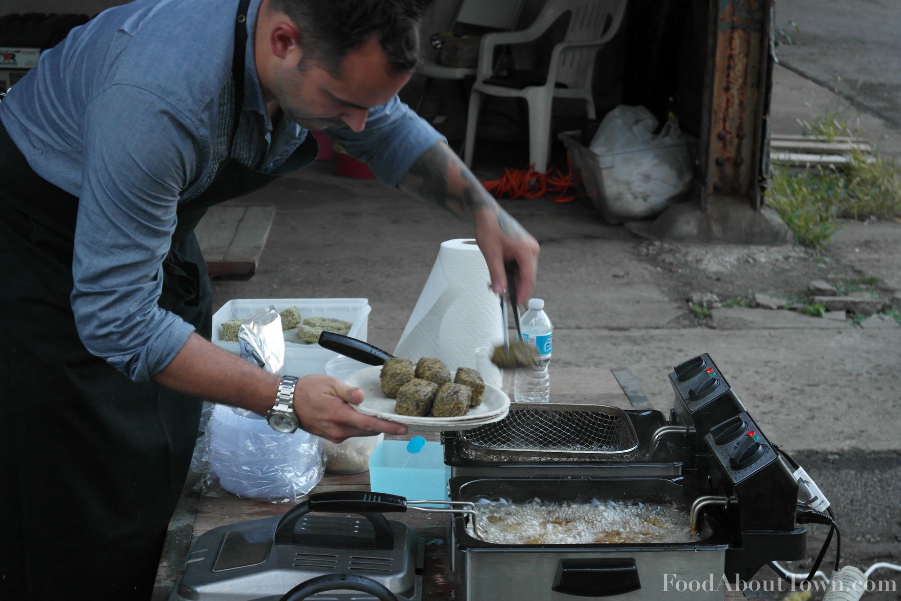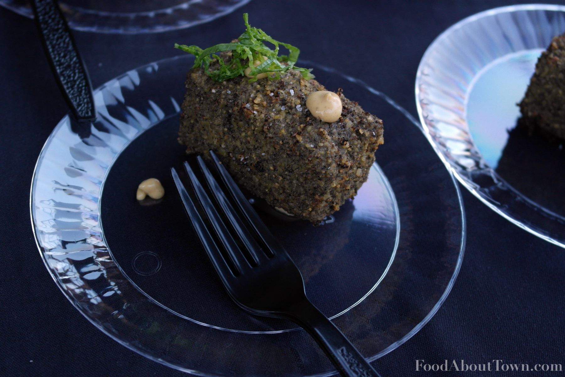 Our warm appetizer was the first dish cooked on site and the setup they were able to whip up was pretty impressive. A small bank of deep fryers was setup to cook the raw lentil block shaped croquette that was filled with a mustard broth and perfectly cooked rabbit and puy lentils and topped with a small amount of finely cut mustard greens. Definitely my favorite of the appetizers and it hit every note I love with the perfect amount of mustard and salt for me and the whole thing kind of reminded me of a giant French lentil soup dumpling in the best possible way. This was high end restaurant food cooked in an outdoor setting and that was an impressive feat to say the least.