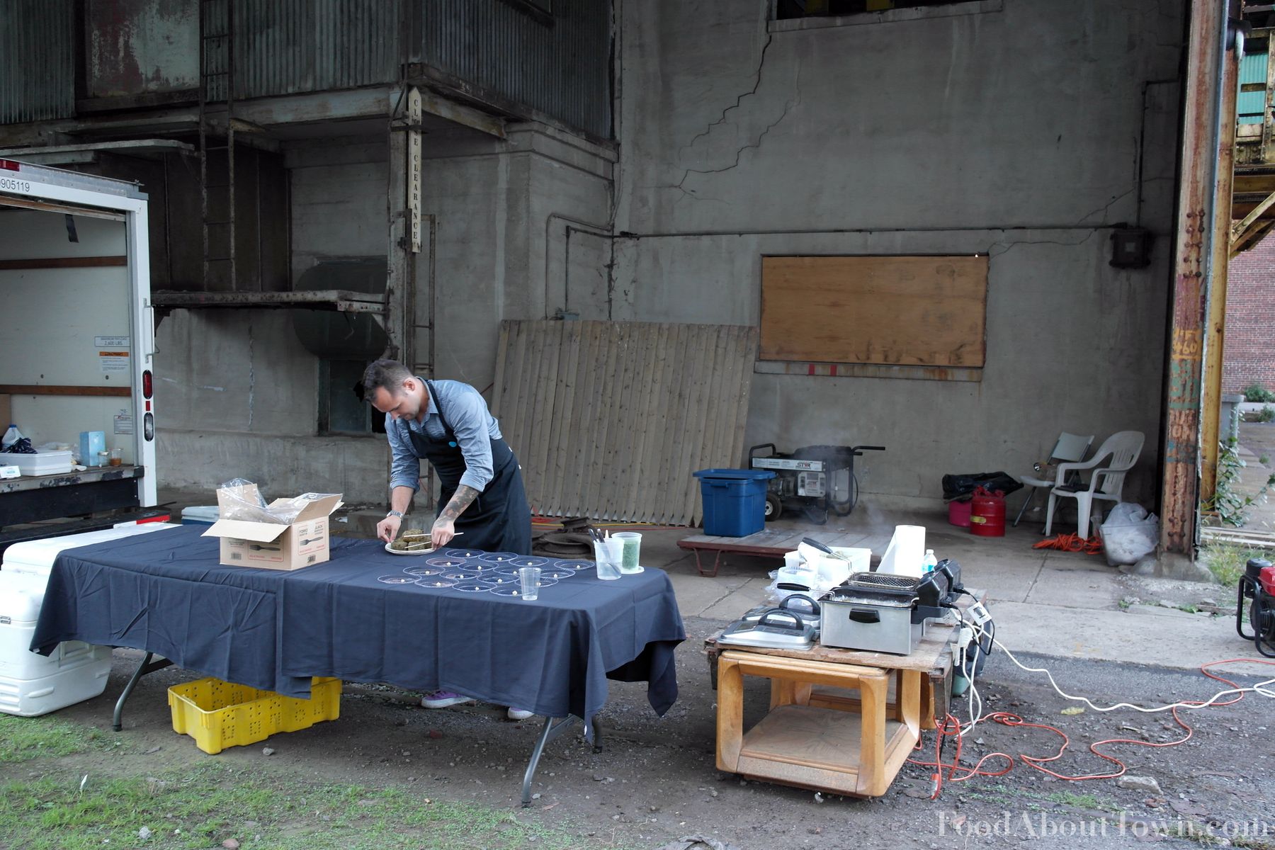 We arrived at the prescribed time of 6:30pm to an area that at first glance just seemed like abandoned grain silos and gave us the feeling of driving into an ambush or something, but we quickly found a parking area and got checked in. We headed toward a covered shed area that housed the cold appetizer and drink section of the dinner. Our first taste of Chef Forster’s food was a pair of cold appetizers that served to get us even more excited about the meal to follow.