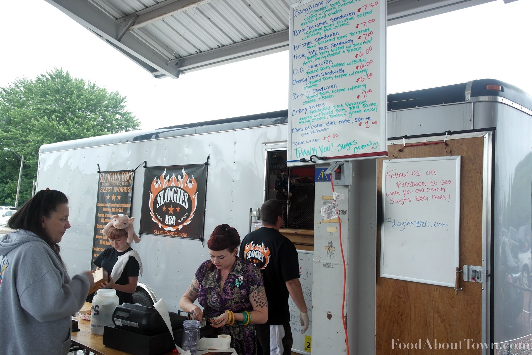 I had heard a lot about Slogie’s BBQ from the @RocFoodTrucks gentleman who also doubles as a Kansas City BBQ judge so I was optimistic when I grabbed one of their brisket sandwiches. Unfortunately what I ended up with was small chunks of dried out brisket on a roll with a braising liquid instead of tender slabs of smoked meat. I think the meat may have been smoked earlier but it was finished in a liquid and was some of the driest brisket I’ve had in a while. It was very disappointing after hearing such good things about them and I can only hope that their competition food is much better than what I was served.