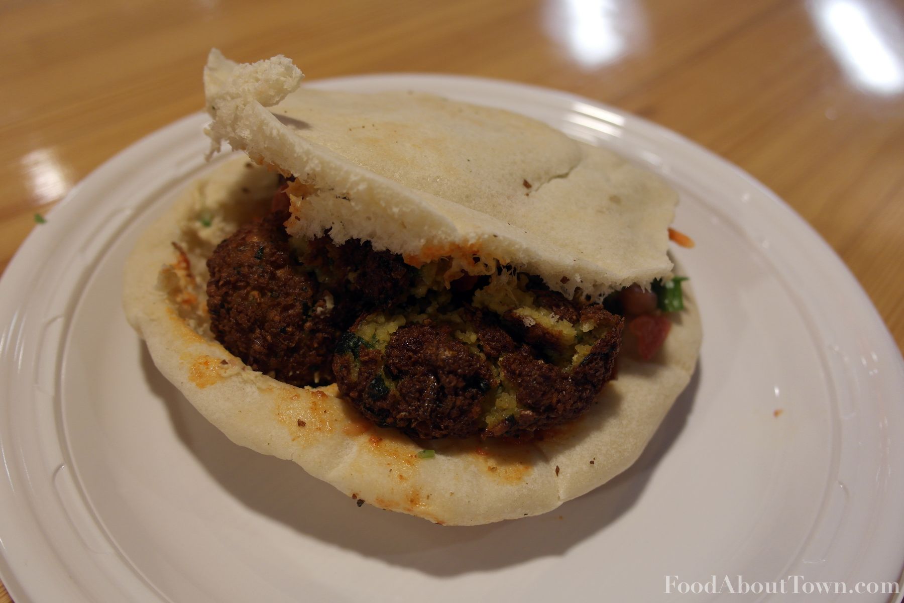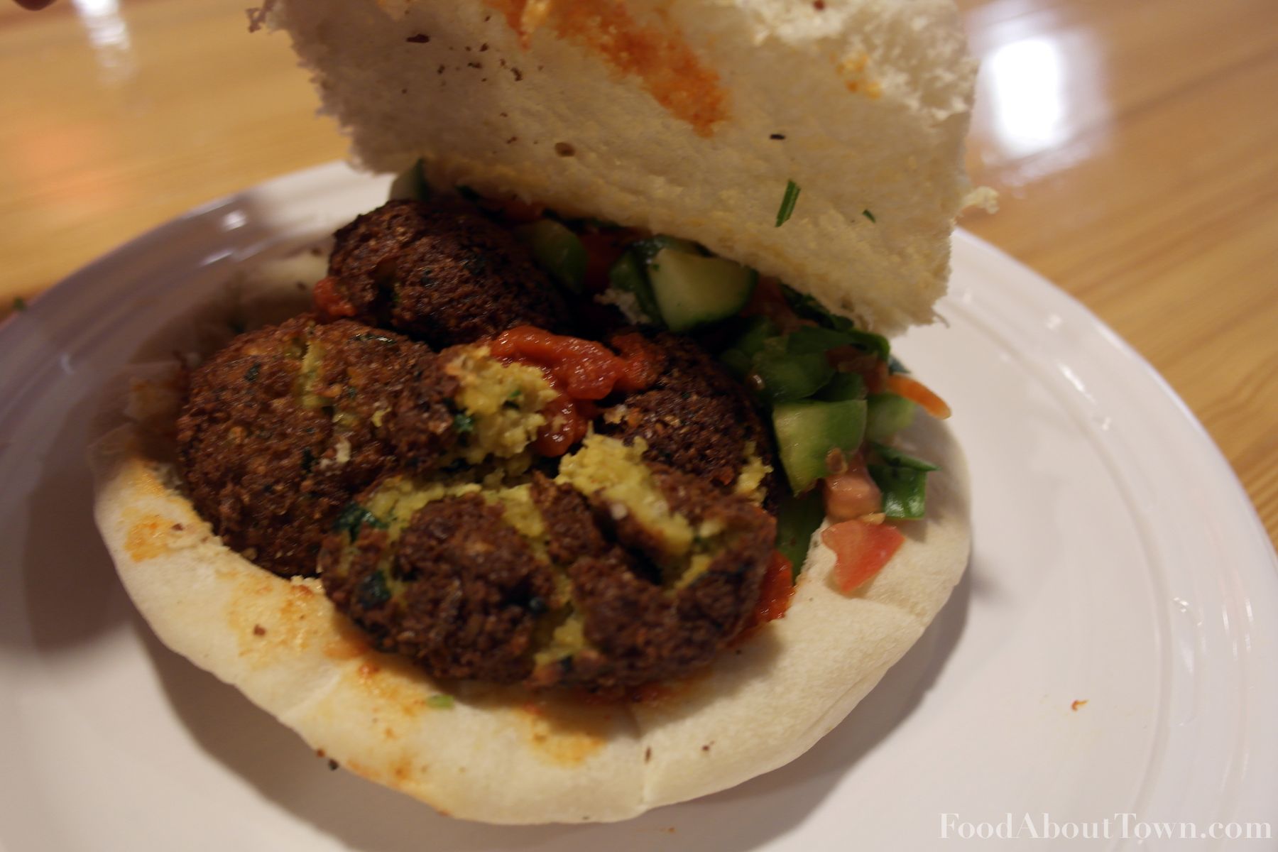 I had the chance to try a falafel pita that evening topped with Israeli salad, matbucha, and hummus. The falafel balls were hand formed to a smallish size, fried fresh and five of them were generously loaded into the pita on top of the toppings. The texture was right on and they were mildly herbed with hints of garlic that meshed well with the hummus. The matbucha wasn’t quite as hot as I was hoping but brought some bitterness and light sweetness to the table. Israeli salad consisted of a bunch of different fresh diced vegetables with a light dressing and added needed crisp freshness. A solid pita and one that whet my appetite to come back and try their other offerings.