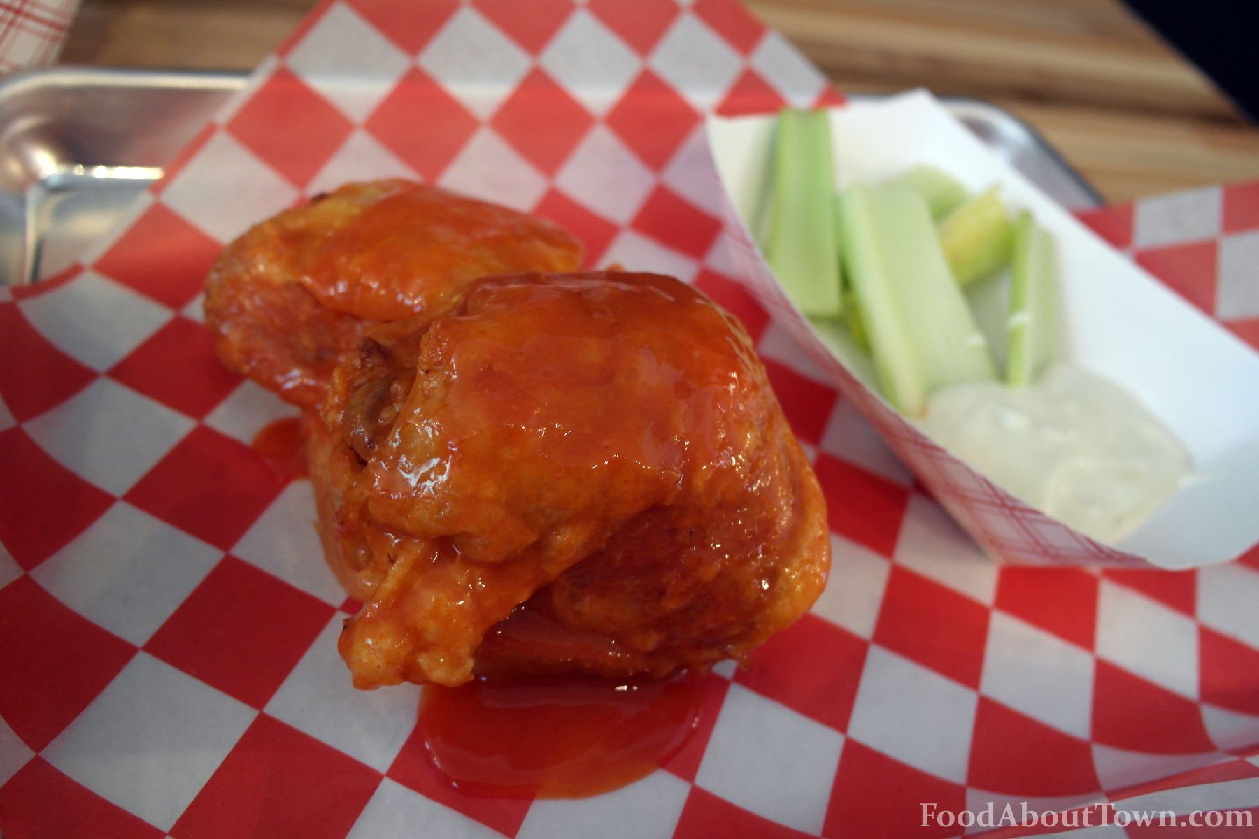 The fried chicken thigh was a smart substitution from the traditional wing cut and one I enjoyed. The skin was crisped well and the meat remained relatively tender. The bone to meat ratio is a lot better than a wing and the sauce was still basically a straight wing sauce and a good version at that. We dug right through these even as we were getting full.